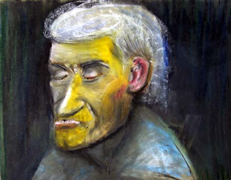Öl-Pastell auf Papier 2006, Übermalung einer Skizze von 1982 aus der Reihe "bei Rainer "