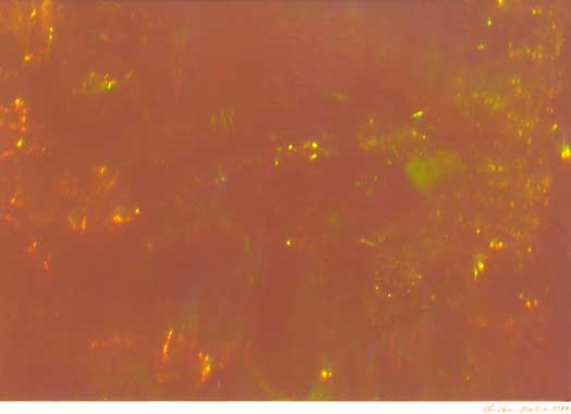 " Feuer " - 1987 Reflexionshologramm auf oranger Farbfläche - 30 x 40 cm