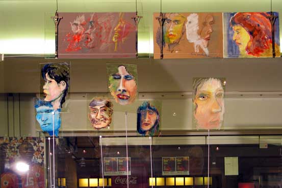 6 Standbildikonen, Ölfarbe auf Acrylglas, je 15 x 25 cm auf Metallstandfuss mit 1 m Draht montiert darüber : Skizzen im Glasbildhalter, 30 x 50 cm, 30 x 40cm und 30 x 32cm